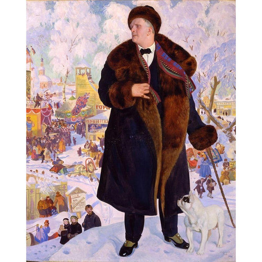 Portrait of Fyodor Chaliapin Black Modern Wood Framed Art Print with Double Matting by Kustodiev, Boris