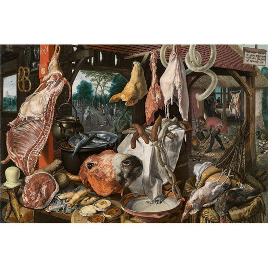 A Meat Stall with the Holy Family Giving Alms Black Modern Wood Framed Art Print with Double Matting by Aertsen, Pieter