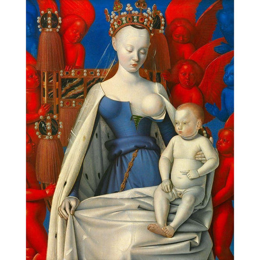 Virgin and Child Surrounded by Angels Black Modern Wood Framed Art Print with Double Matting by Fouquet, Jean