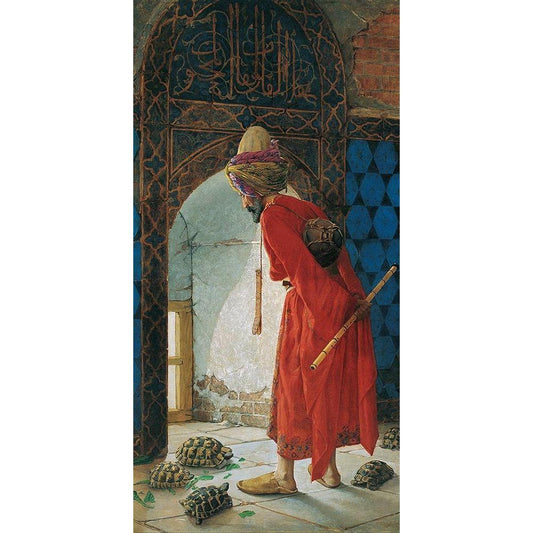 The Tortoise Trainer Black Modern Wood Framed Art Print with Double Matting by Bey, Osman Hamdi