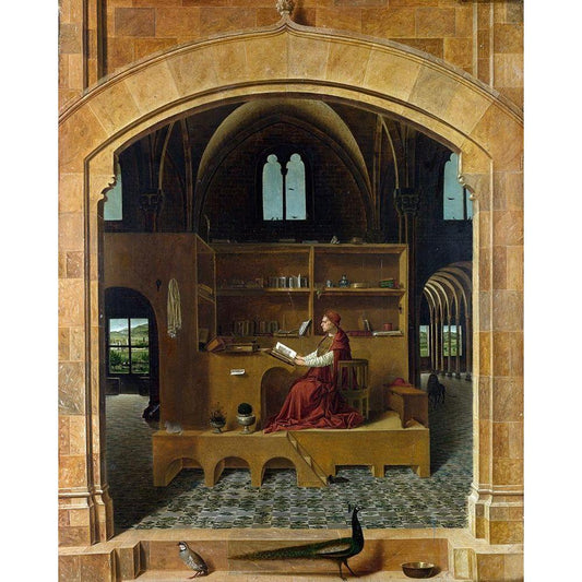 Saint Jerome in his Study Black Modern Wood Framed Art Print with Double Matting by da Messina, Antonello