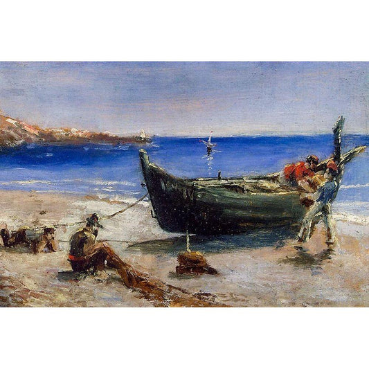 Fishing Boat Black Modern Wood Framed Art Print with Double Matting by Toulouse-Lautrec, Henri de