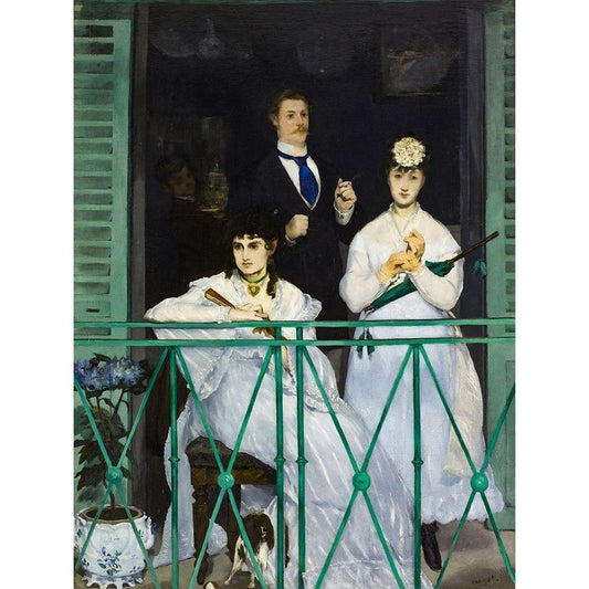 The Balcony Black Modern Wood Framed Art Print with Double Matting by Manet, Edouard