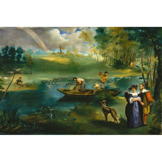 Fishing Black Modern Wood Framed Art Print with Double Matting by Manet, Edouard