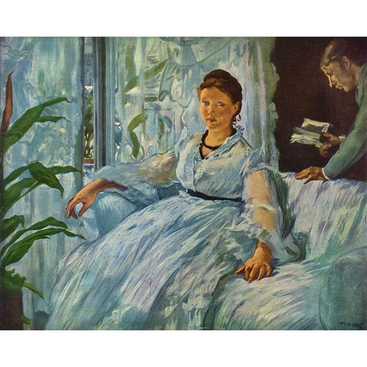 The Reading Black Modern Wood Framed Art Print with Double Matting by Manet, Edouard