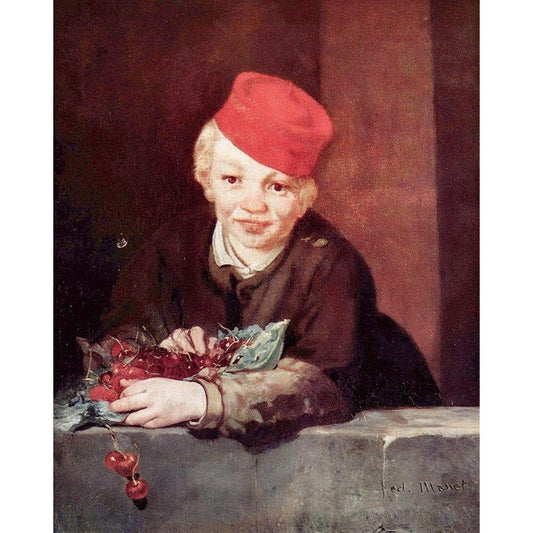 Boy with cherries Black Modern Wood Framed Art Print with Double Matting by Manet, Edouard