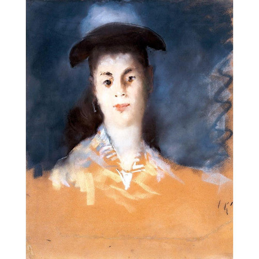Woman Wearing a Hat with Silk Gauze Black Modern Wood Framed Art Print with Double Matting by Manet, Edouard