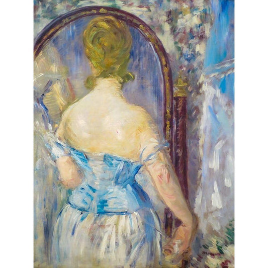 Woman Before a Mirror Black Modern Wood Framed Art Print with Double Matting by Manet, Edouard