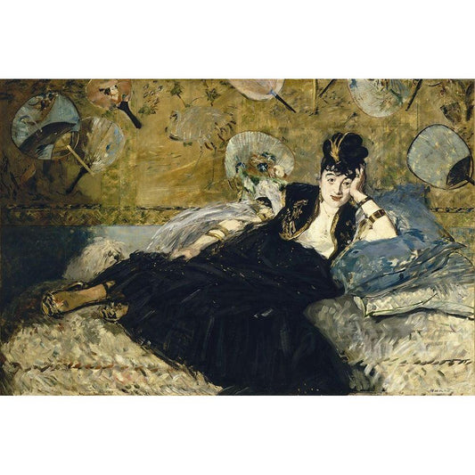 Woman with Fans Black Modern Wood Framed Art Print with Double Matting by Manet, Edouard