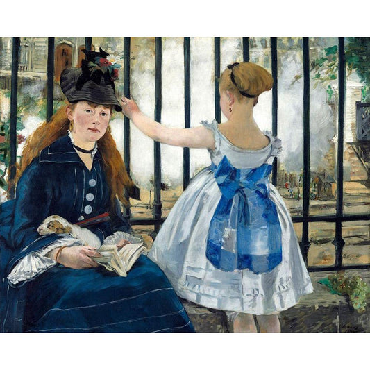 The Railway Black Modern Wood Framed Art Print with Double Matting by Manet, Edouard