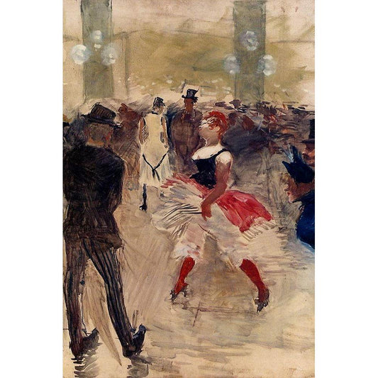 At the Nouveau Cirque the Dancer and Five Stuffed Shirts Black Modern Wood Framed Art Print with Double Matting by Toulouse-Lautrec, Henri de