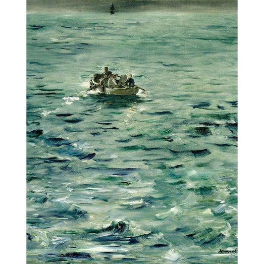 Rocheforts Escape Black Modern Wood Framed Art Print with Double Matting by Manet, Edouard