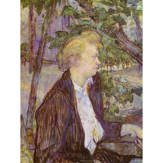 Woman seated in M. Forests Garden, Justine Dieuhl Black Modern Wood Framed Art Print with Double Matting by Toulouse-Lautrec, Henri de
