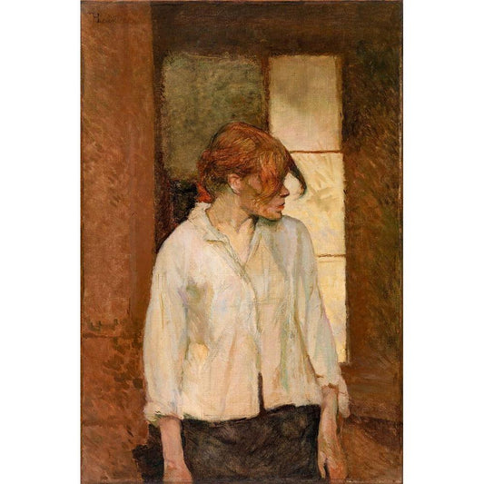La Rousse in a White Blouse Black Modern Wood Framed Art Print with Double Matting by Toulouse-Lautrec, Henri de
