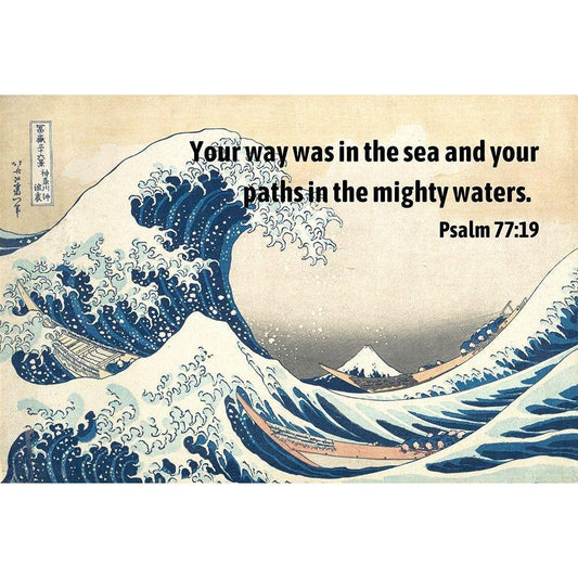 Bible Verse Quote Psalm 77:19, Katsushika Hokusai - The Great Wave of Kanagawa Black Modern Wood Framed Art Print with Double Matting by ArtsyQuotes