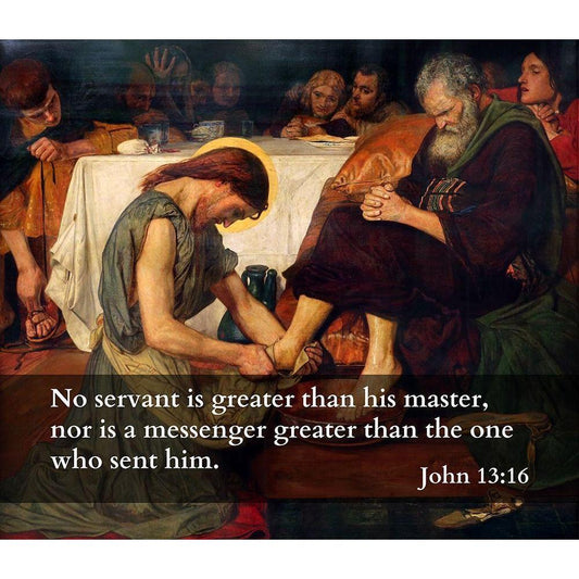Bible Verse Quote John 13:16, Ford Madox Brown - Jesus Washes Peters Feet Black Modern Wood Framed Art Print with Double Matting by ArtsyQuotes