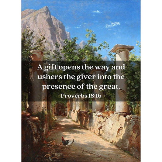 Bible Verse Quote Proverbs 18:16, Carl Fredrik Aagard - Ancient Columns Black Modern Wood Framed Art Print with Double Matting by ArtsyQuotes