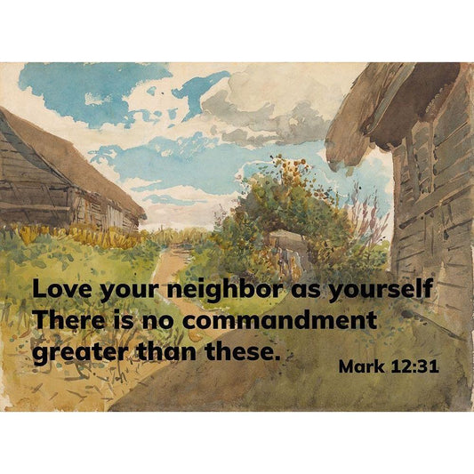 Bible Verse Quote Mark 12:31, Laszlo Mednyanszky - Landscape between Haylofts Black Modern Wood Framed Art Print with Double Matting by ArtsyQuotes