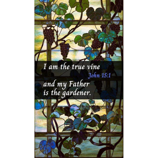 Bible Verse Quote John 15:1, Louis Comfort Tiffany - Grapevine Panel Black Modern Wood Framed Art Print with Double Matting by ArtsyQuotes