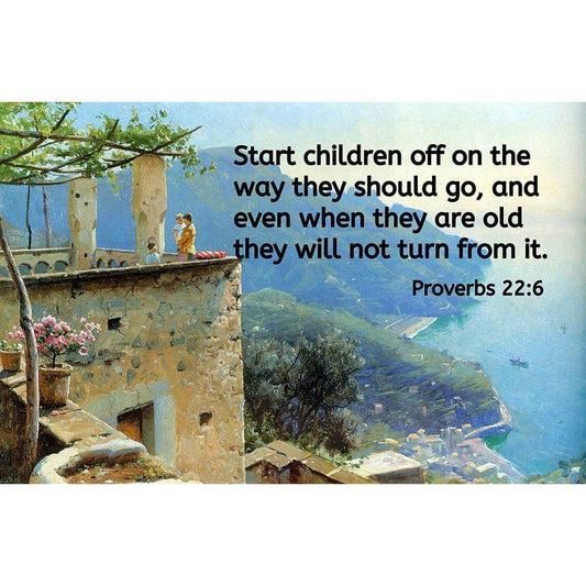 Bible Verse Quote Proverbs 22:6, Peder Mork Monsted - The Ravello Coastline Black Modern Wood Framed Art Print with Double Matting by ArtsyQuotes