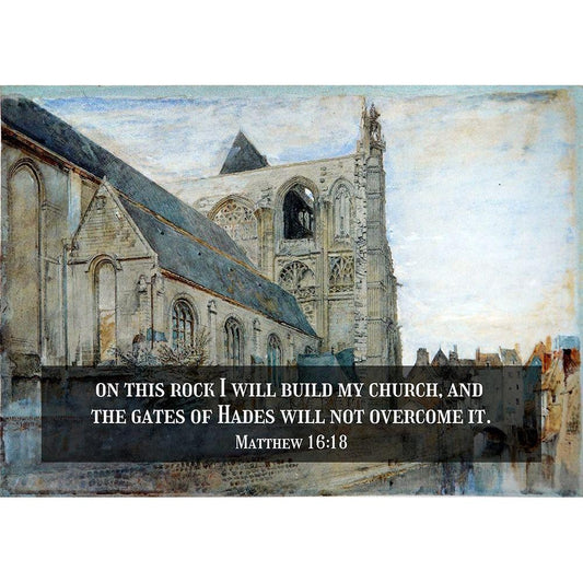 Bible Verse Quote Matthew 16:18, John Ruskin - Abbeville Church of St Wulfran Black Modern Wood Framed Art Print with Double Matting by ArtsyQuotes