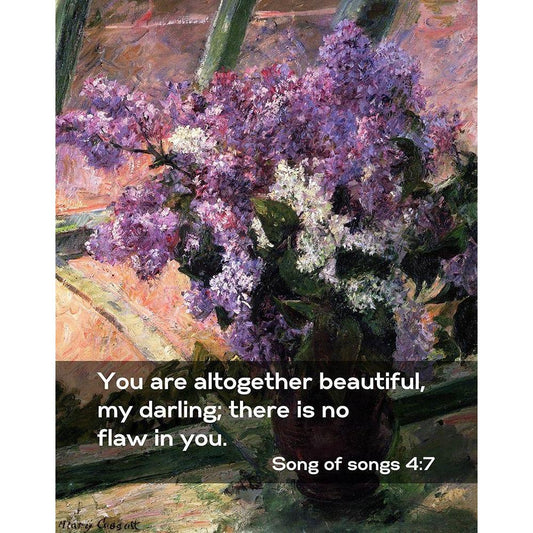 Bible Verse Quote Song of Songs 4:7, Mary Cassatt - Lilacs in a Window Black Modern Wood Framed Art Print with Double Matting by ArtsyQuotes