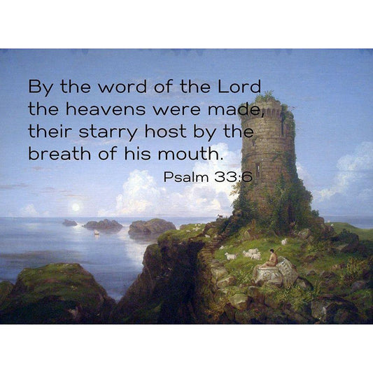 Bible Verse Quote Psalm 33:6, Thomas Cole - Italian Coast Scene with Ruined Tower Black Modern Wood Framed Art Print with Double Matting by ArtsyQuotes
