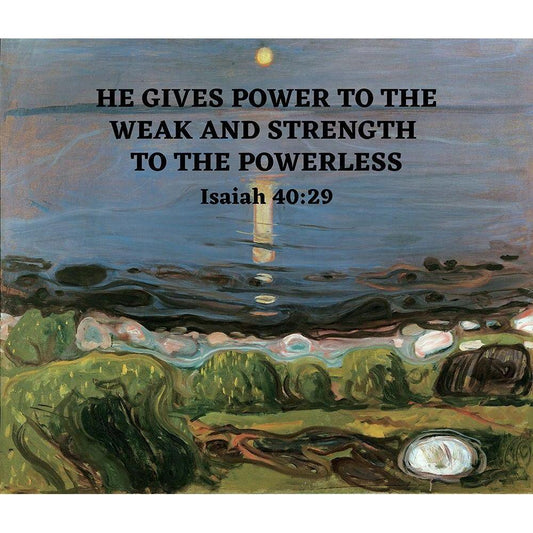 Bible Verse Quote Isaiah 40:29, Edvard Munch - Summer Night by the Beach Black Modern Wood Framed Art Print with Double Matting by ArtsyQuotes