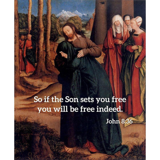 Bible Verse Quote John 8:36, Bernhard Strigel - Christ Taking Leave of His Mother Black Modern Wood Framed Art Print with Double Matting by ArtsyQuotes