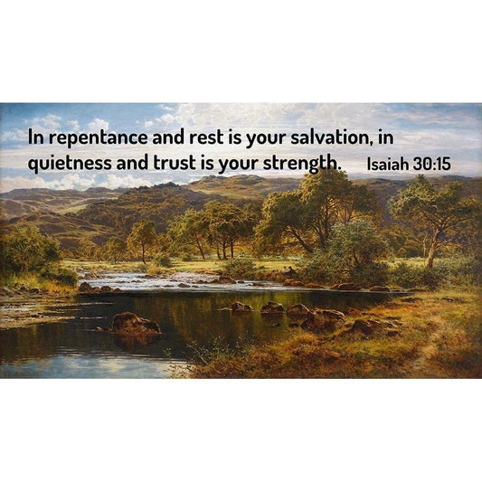 Bible Verse Quote Isaiah 30:15, Benjamin Williams Leader - A Bright Afternoon - North Wales Black Modern Wood Framed Art Print with Double Matting by ArtsyQuotes