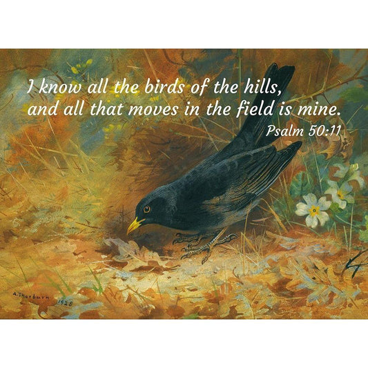 Bible Verse Quote Psalm 50:11, Archibald Thorburn - Blackbird Black Modern Wood Framed Art Print with Double Matting by ArtsyQuotes