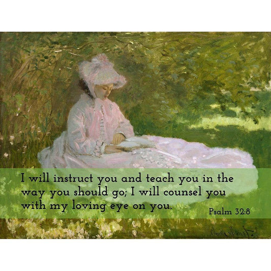 Bible Verse Quote Psalm 32:8, Claude Monet - Springtime 2 Black Modern Wood Framed Art Print with Double Matting by ArtsyQuotes