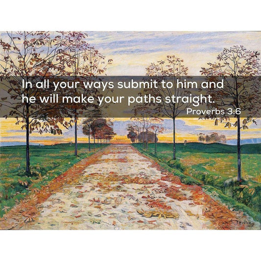 Bible Verse Quote Proverbs 3:6, Ferdinand Hodler - Autumn Evening Black Modern Wood Framed Art Print with Double Matting by ArtsyQuotes