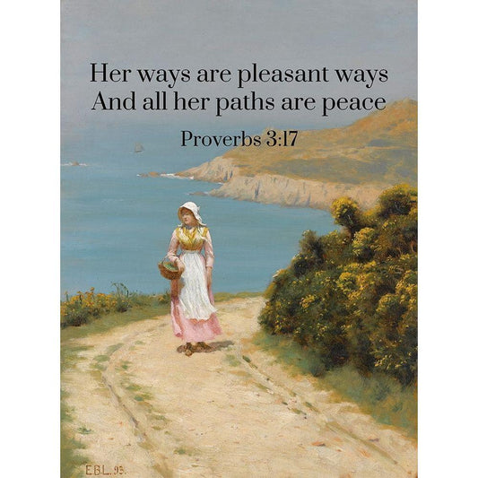 Bible Verse Quote Proverbs 3:17, Edmund Blair Leighton - Girl on a Coastal Path Black Modern Wood Framed Art Print with Double Matting by ArtsyQuotes