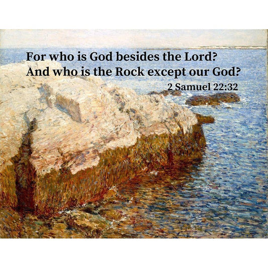 Bible Verse Quote 2 Samuel 22:32, Childe Hassam - Cliff Rock Black Modern Wood Framed Art Print with Double Matting by ArtsyQuotes