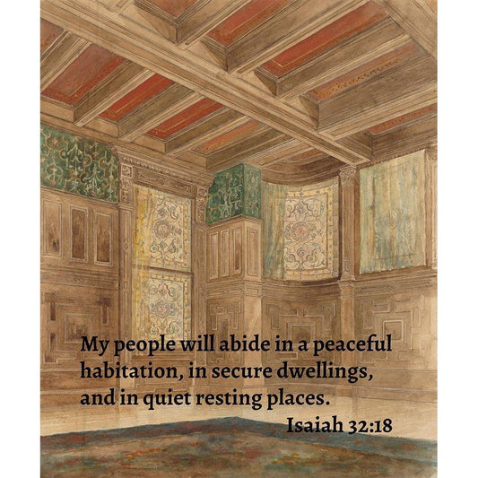 Bible Verse Quote Isaiah 32:18, Louis Comfort Tiffany - Design for an interior Black Modern Wood Framed Art Print with Double Matting by ArtsyQuotes