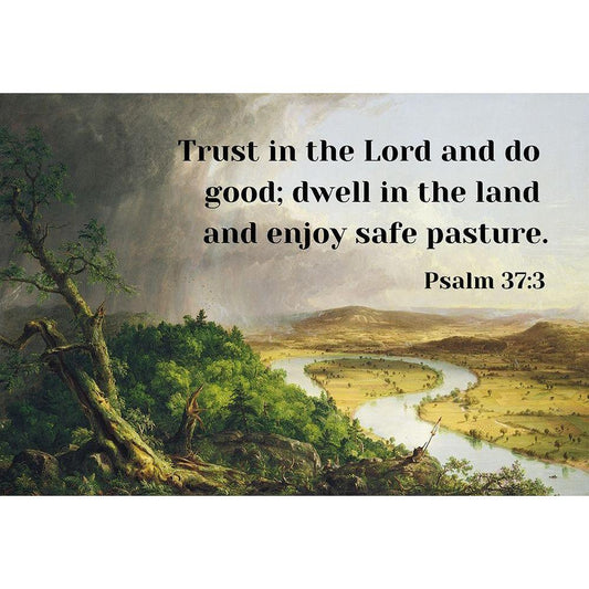 Bible Verse Quote Psalm 37:3, Thomas Cole - View from Mount Holyoke Black Modern Wood Framed Art Print with Double Matting by ArtsyQuotes