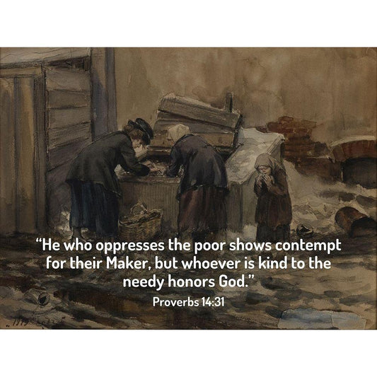 Bible Verse Quote Proverbs 14:31, Ivan Vladimirov - Woman and Girl Sorting Through Trash for Food Black Modern Wood Framed Art Print with Double Matting by ArtsyQuotes