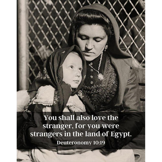 Bible Verse Quote Deuteronomy 10:19, Lewis Wickes Hine - Portrait of an Italian Mother and Child Black Modern Wood Framed Art Print with Double Matting by ArtsyQuotes