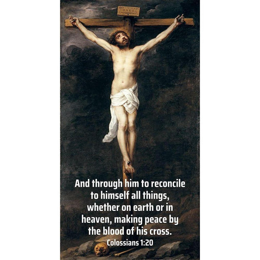 Bible Verse Quote Colossians 1:20, Bartolome Esteban Murillo - Christ on the Cross Black Modern Wood Framed Art Print with Double Matting by ArtsyQuotes