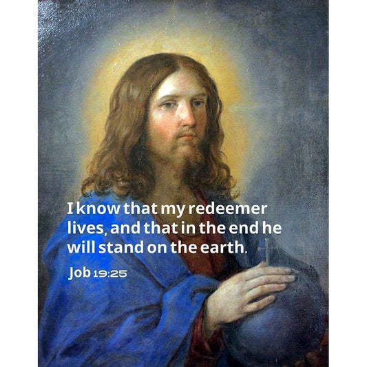 Bible Verse Quote Job 19:25, Guido Reno - Christ the Savior Black Modern Wood Framed Art Print with Double Matting by ArtsyQuotes