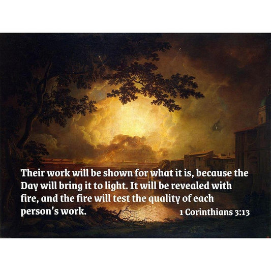 Bible Verse Quote 1 Corinthians 3:13, Joseph Wright - Firework Display at the Castel Sant Angelo Black Modern Wood Framed Art Print with Double Matting by ArtsyQuotes