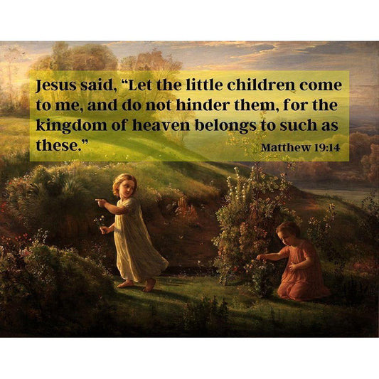 Bible Verse Quote Matthew 19:14, Anne Francois Janmot - Poem of the Soul Spring Black Modern Wood Framed Art Print with Double Matting by ArtsyQuotes