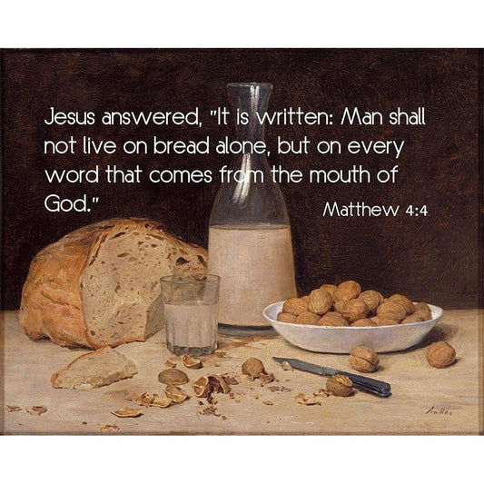 Bible Verse Quote Matthew 4:4, Albert Ankler - Still Life New Wine Black Modern Wood Framed Art Print with Double Matting by ArtsyQuotes