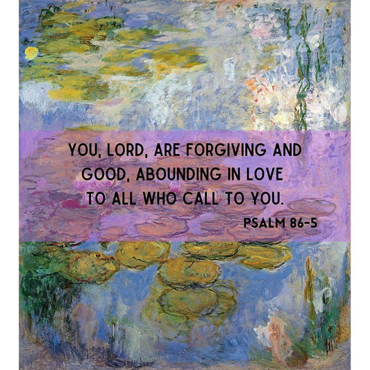 Bible Verse Quote Psalm 86:5, Christina Robertson - Water Lilies in Pond Black Modern Wood Framed Art Print with Double Matting by ArtsyQuotes