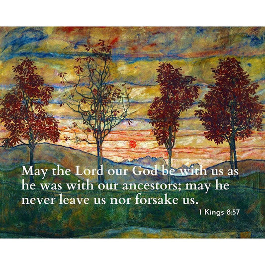 Bible Verse Quote 1 Kings 8:57, Egon Schiele - Four Trees 1917 Black Modern Wood Framed Art Print with Double Matting by ArtsyQuotes