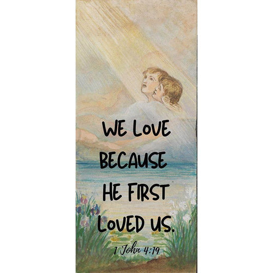 Bible Verse Quote 1 John 4:19, Louis Comfort Tiffany - Design for window 3 Black Modern Wood Framed Art Print with Double Matting by ArtsyQuotes