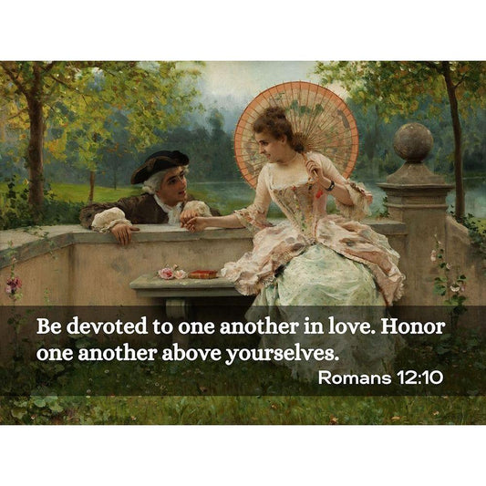 Bible Verse Quote Romans 12:10, Federico Andreotti - An in Love Conversation in Park Black Modern Wood Framed Art Print with Double Matting by ArtsyQuotes