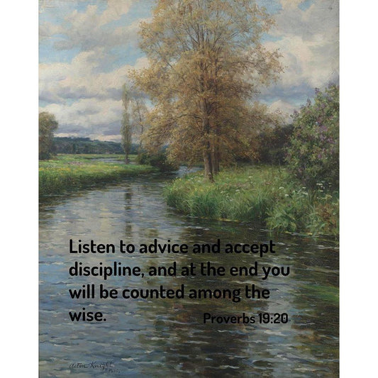 Bible Verse Quote Proverbs 19:20, Louis Aston Knight - At the Waters Edge Black Modern Wood Framed Art Print with Double Matting by ArtsyQuotes