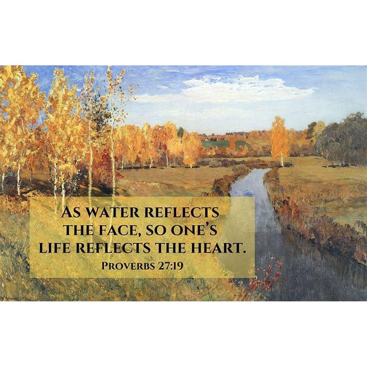 Bible Verse Quote Proverbs 27:19, Issac Levitan - Autumn Landscape I Black Modern Wood Framed Art Print with Double Matting by ArtsyQuotes